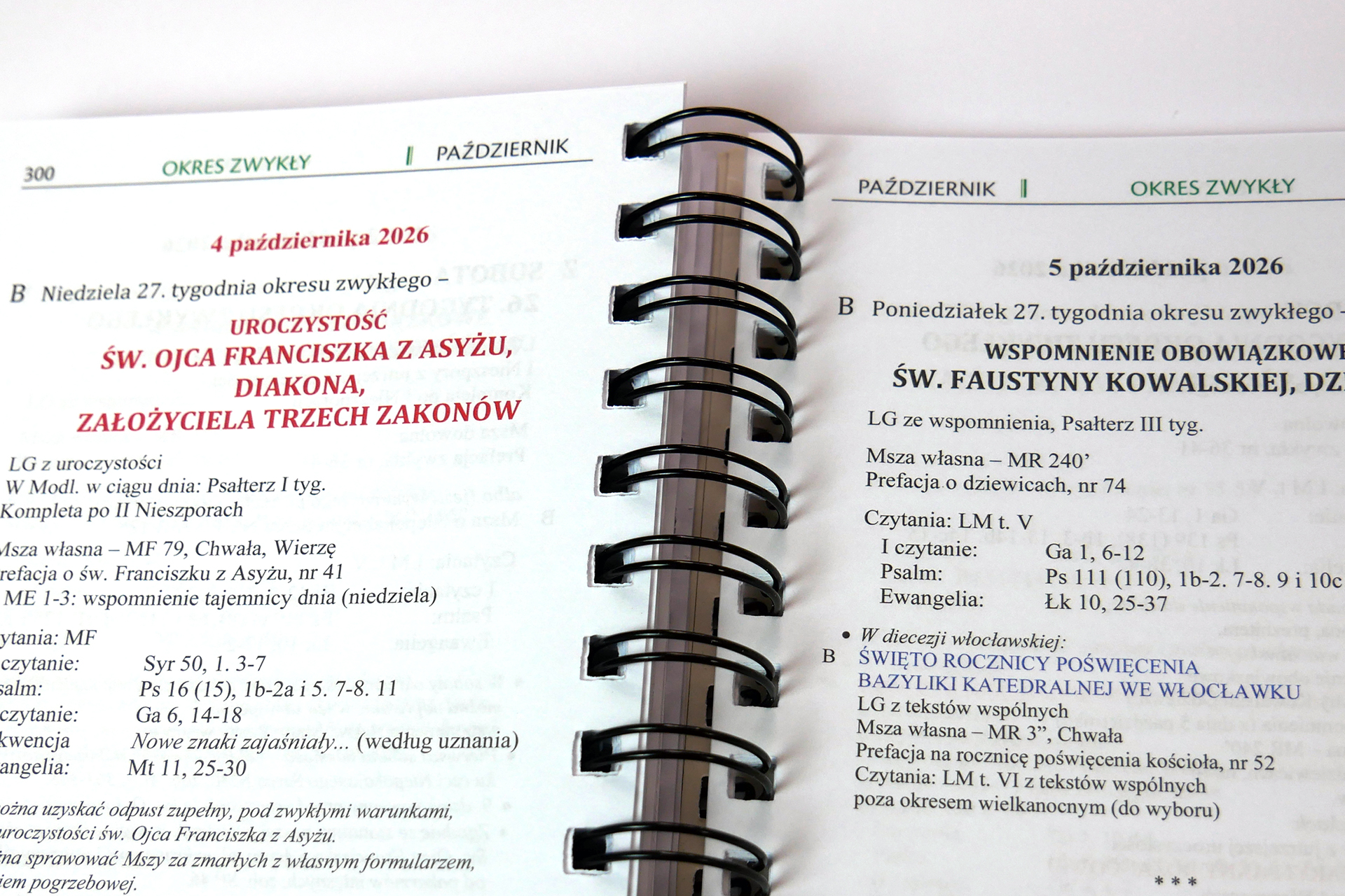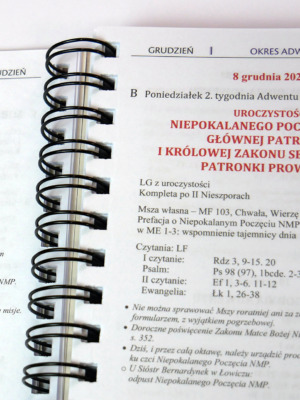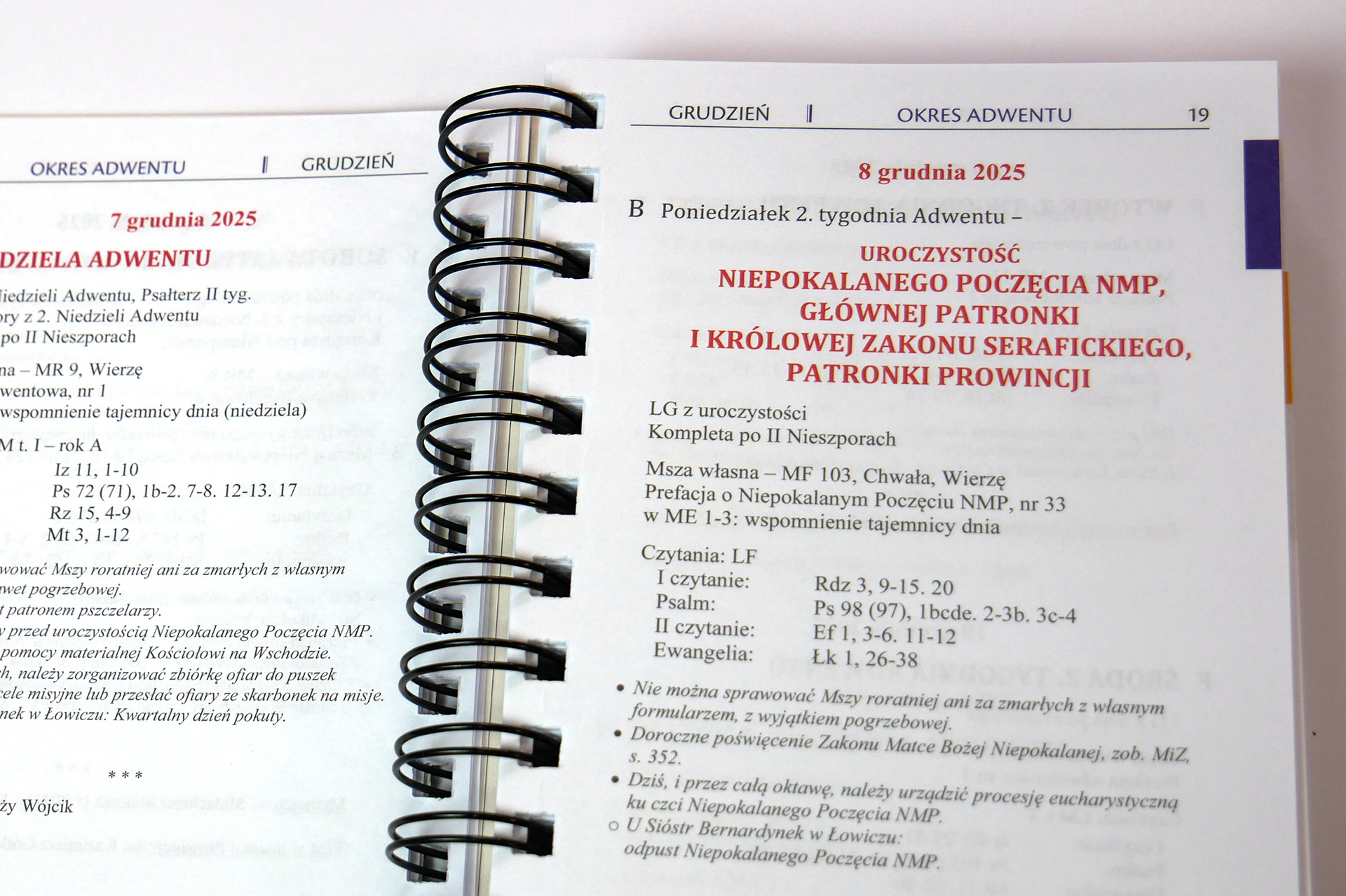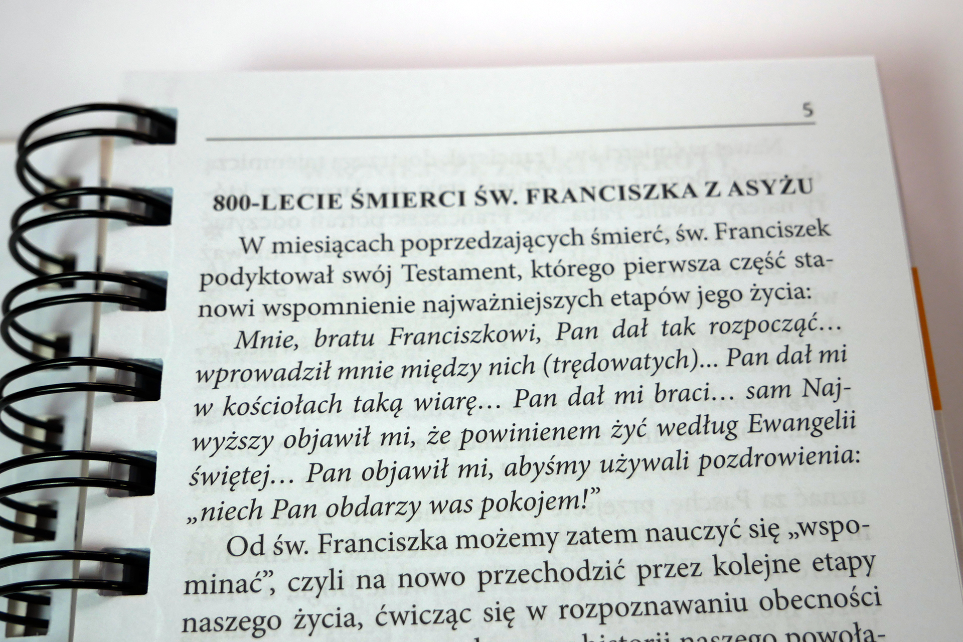 Kalendarz zawiera opisy poszczególnych dni, zalecenia liturgiczne, sigla czytań, dodatkowe obchody, imieniny żyjących współbraci oraz rocznice śmierci naszych zmarłych współbraci.
